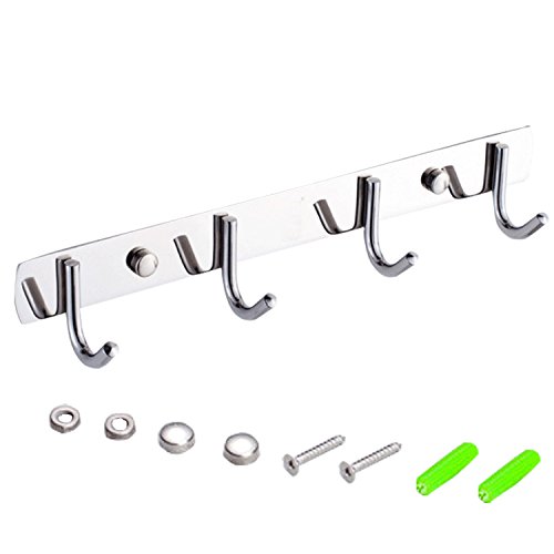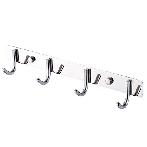 WARRAH Coat Rack Hat Rail Wall Mounted Stainless Steel Heavy Duty Hook for Household Bathroom Kithchen(4hooks)
