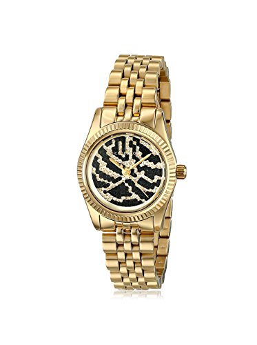 -. Feature : Gold-tone stainless steel case. / Gold-tone stainless steel bracelet. / Gold-tone pave dial with black zebra pattern. / Quartz movement. / Mineral crystalWater resistant 50 meters.
