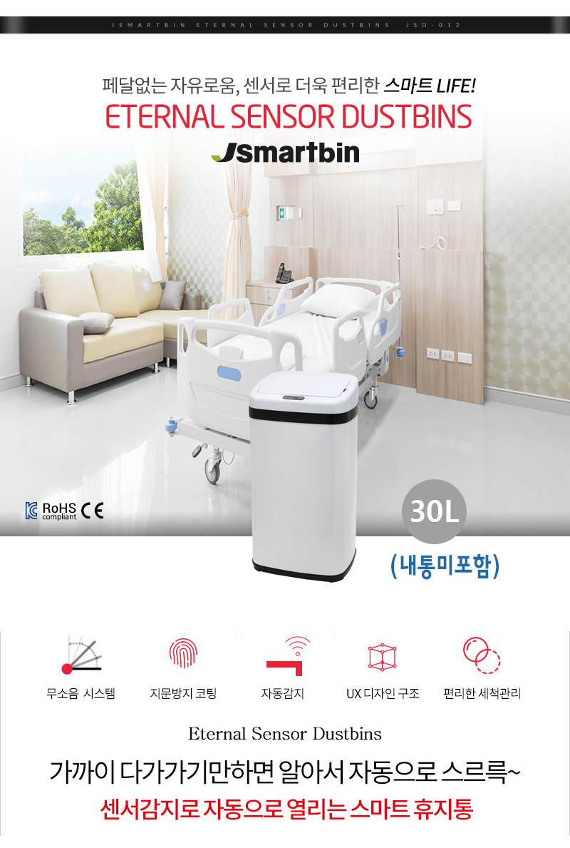 Noiseless Smart Trash Can JSD-012B 30L White Without inner box Open Automatic sensor
