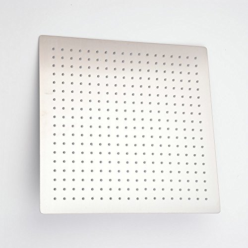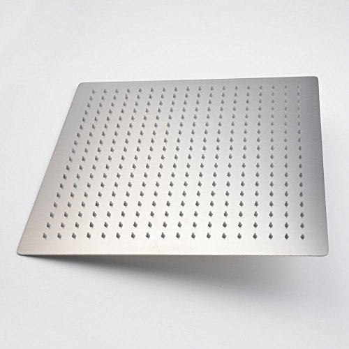 Hiendure 16-inch Solid Square Ultra Thin 304 Stainless Steel Rainfall Shower Head, Brushed Stainless Steel