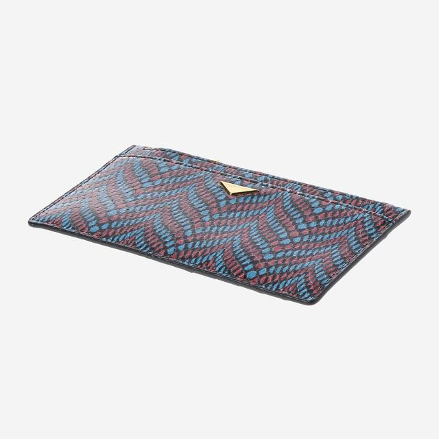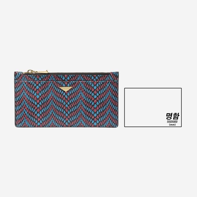 블루와 핑크의 감각적인 배색이 돋보이는 뱀피 프린트의 소가죽 소재를 사용한 장지갑입니다.