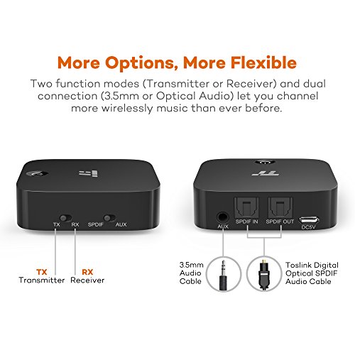 TaoTronics Bluetooth Transmitter and Receiver, Digital Optical TOSLINK and 3.5mm Wireless Audio Adapter for TV / Home Stereo System - aptX Low Latency