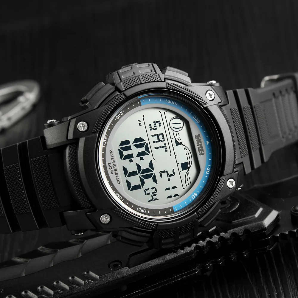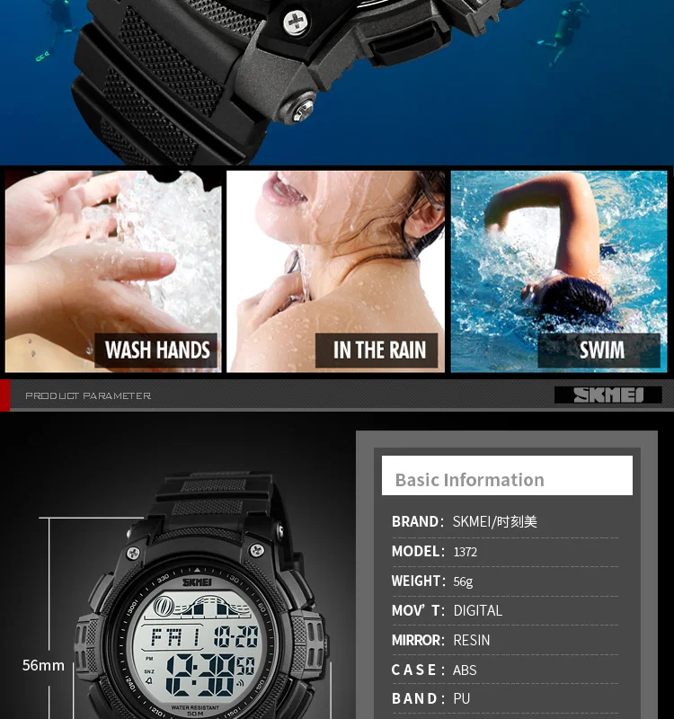 Feature:Water Resistant,LED display,Stop Watch,Auto Date,Back Light,Shock Resistant,Alarm,Swim,Chronograph