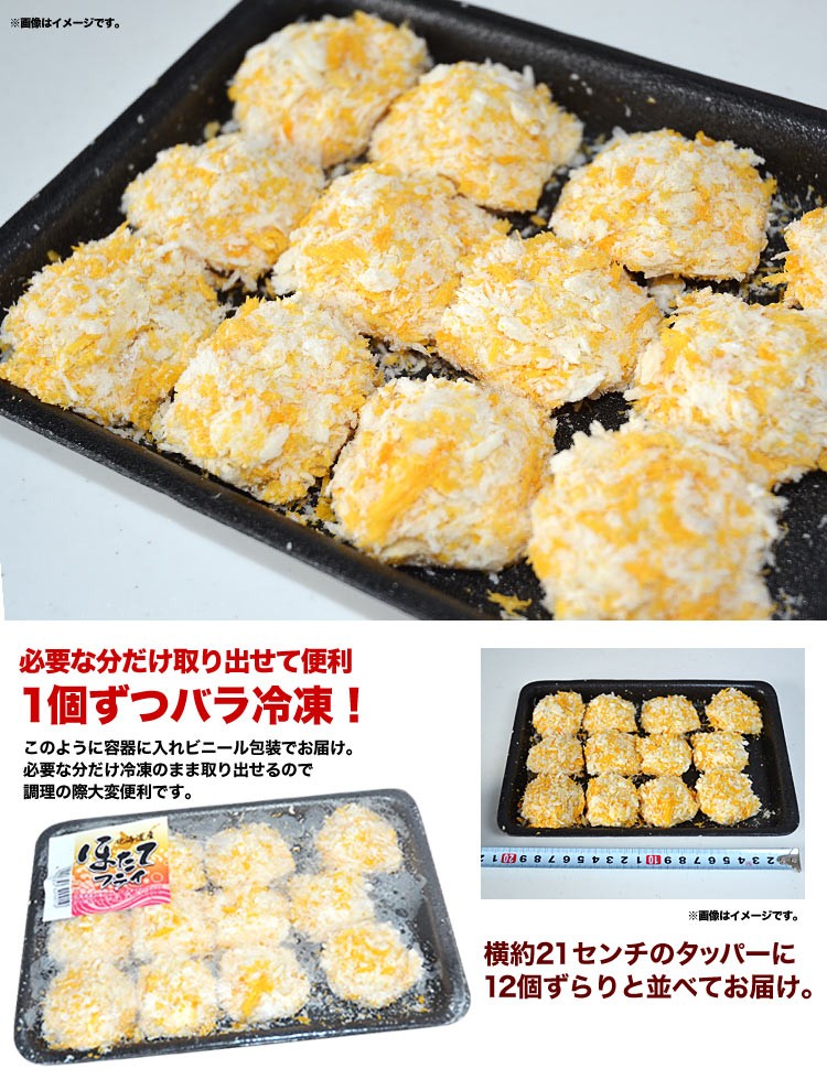 ■原材料名:衣(パン粉、小麦粉、でん粉、コーンフラワー、食塩、砂糖)、ベビーホタテ、加工でん粉、炭酸Ca、増粘剤(グァーガム)、アナトー色素、調味料(アミノ酸等)