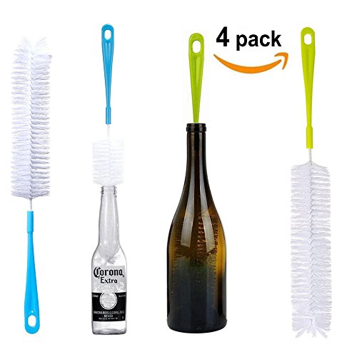 QYES Long Bottle Brush 16 Inches 4-Pack for Narrow Neck Beer, Wine, Kombucha, Thermos, Pitcher, Carafe, Brewing Bottle Cleaner