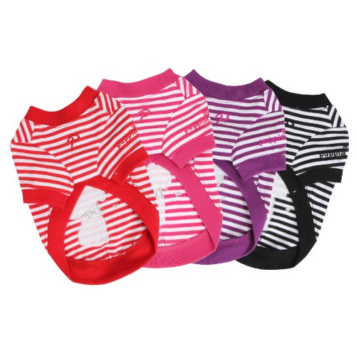 Studio : Puppia Int'l Inc. Publisher : Puppia Int'l Inc. Binding : Misc. Product Description The mascot dog shirt by puppia is made of natural cotton and features a stripe and solid scheme. It has the puppia character applique on the back. It is available in red, pink, purple and black. Sizes range from x-small to X-large. 0