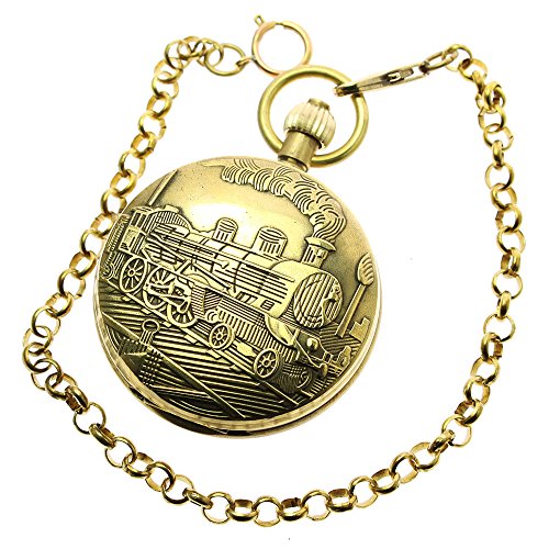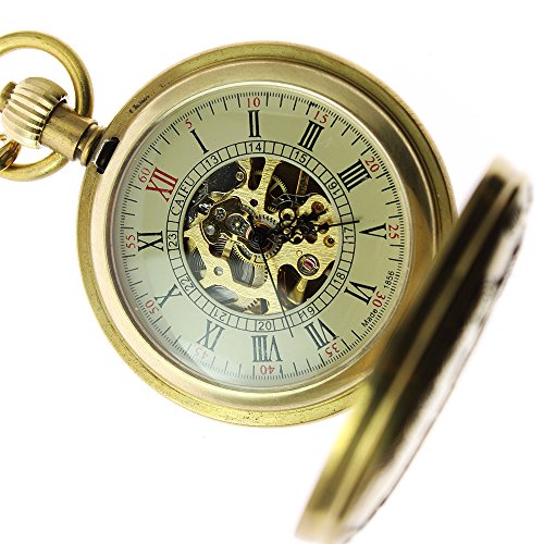 -. Feature : Mechanical Hand-Winding Pocket Watch, Analog Display / Full Hunter Pocket Watch / 100% Brass Case;High Quality / Analog Roman Numerals Display / Come with Gift Box, and a Copper Chain