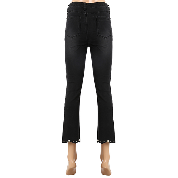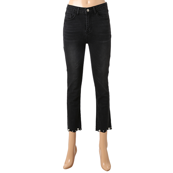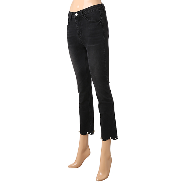 밑단 물결컷팅 디테일과 진주 포인트 디자인이 매력적인 부츠컷 팬츠로