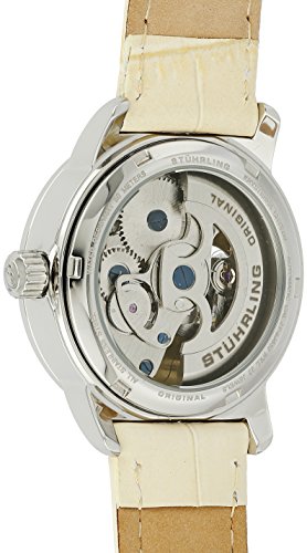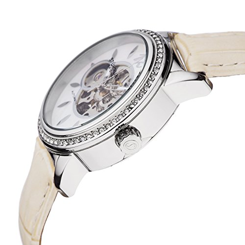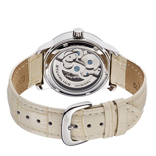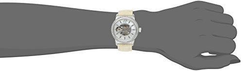 White mother of pearl outer dial with stainless steel applied Arabic numeral 12 and center skeleton cut out