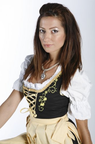 -. Title : 3tlg. besticktes Dirndl Set Schwarz Gelb mit Bluse und Schürze