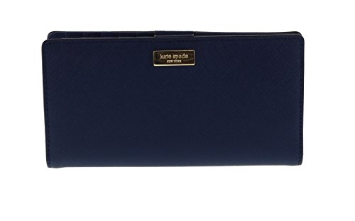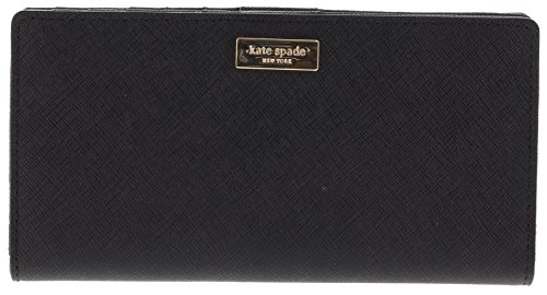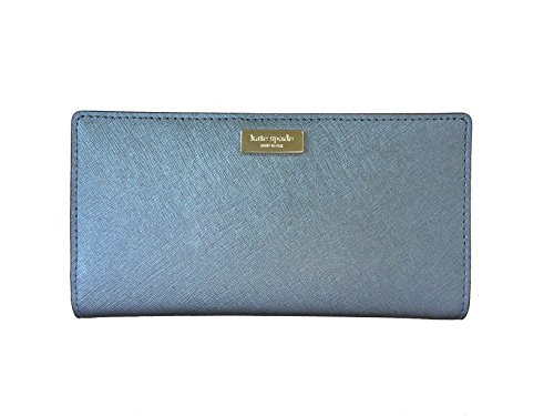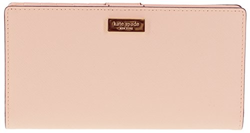 This compact Kate Spade New York Newbury Lane Stacy wallet is wrapped in rose gold tone saffiano finished leather with 14-karat light gold plated hardware. This billfold has a snap closure, and Kate Spades logo staple accents the front. The back features an exterior zippered accordion pocket. The inside features 12 card slots, a clear ID slot and billfold compartments. It is slightly smaller than many at 6.75 inches (L) x 3.5 inches (H) x 1 inch (W).Feature