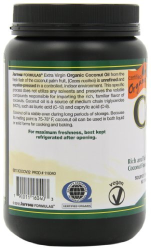 -. Feature : Organic Extra Virgin Coconut Oil / Great Source of Healthy MCTs / 100% Expeller Pressed / Solvent Free Processing,Great For Cooking & Baking / Jarrow Formulas Coconut Oil 100% Organic, Extra Virgin, 32 Ounce (Pack of 3)