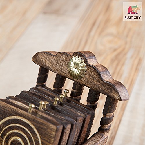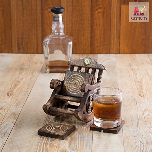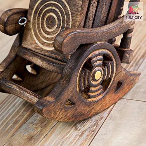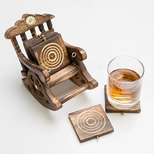 -. Title : Rusticity Wood Coaster Set of 6 with Rocking Chair Holder for beer and other drinks | Handmade | (3.5x3.5 in)