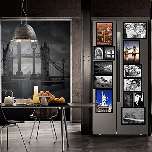 Magnetic Picture Frames, Photo collage Frame for Refrigerator, Hold 4 x 6", 3.5 x 5", 2.5 x 3.5" Photos on Dishwasher, School Locker, Magnetic Board and other Metallic surfaces, 15 Pack, Black