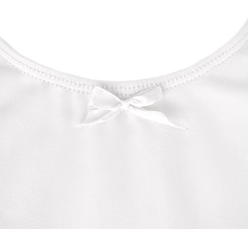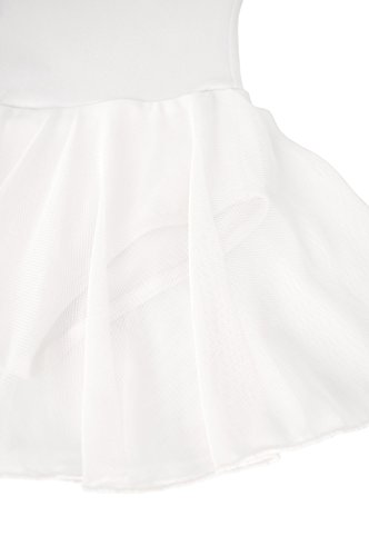 Dancina Leotard Dress Classic Flutter Sleeve Girls Full Front Lined Biketard w/ Dancing Skirt 5 White