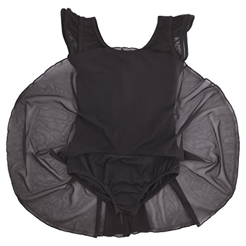 Dancina Leotard Dress Classic Flutter Sleeve Real Ballerina Soft Unitard w/ Twirling Skirt 6 Black
