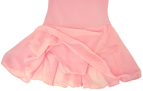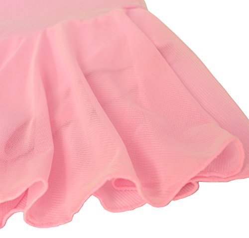 Dancina Leotard Dress Classic Flutter Sleeve Girls Full Front Lined Biketard w/ Dancing Skirt 5 Pink