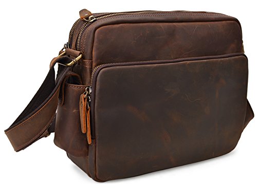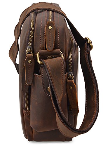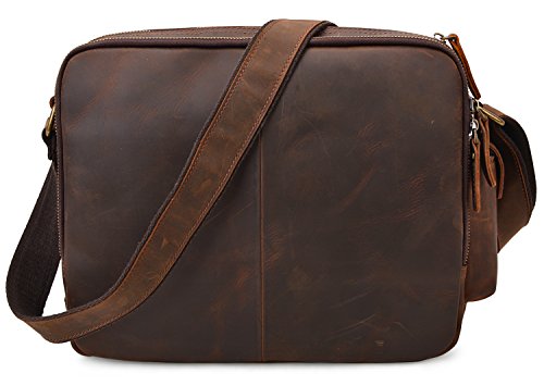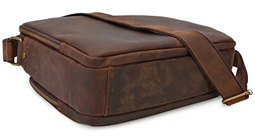 -. Feature : 100% GENUINE LEATHER: Made by high quality crazy horse leather; Dimensions: (L)12" x (H)9.5" x (W)4"; Weight: 1.21kg (2.66lbs); / LARGE CAPACITY: 1 front pocket with 3 slip pockets, 4 pen pockets and 1 zipper pocket; 1 side pocket; 1 back zipper pocket with 2 pen pockets, 8 card pockets and 1 zipper pocket; 1 main compartment with 1 zipper pocket and 2 slip pockets; / DURABLE&PRACTICAL BAG: With multi pockets, you can store things in places sure to have room for every little things you need organized: Can fit your wallet, passport, cards, ipad, phone, etc; / MULTIFUNCTION: Perfect used as a briefcase, laptop computer bag, shoulder bag, crossbody bag; Suitable for business, work, travel, school, casual, etc; / GOOD CUSTOMER SERVICE: Any problems with your bag, please contact our world-class, friendly customer support team for quick solutions by contacting us through Amazon;