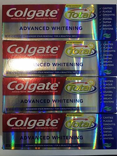 Total Advanced Whitening Gel Toothpaste Helps Remove & Prevent Stains Four Convenient 4.0 Oz Tubes Brand : Colgate MPN(PartNumber) : 706051 EAN : 0035000745439 Package Dimensions(LxWxH) : 18x17x5cm ; 363 g