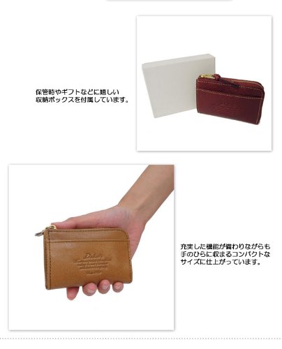 -. Feature : 外寸:縦7cm×横10.5cm×まち2cm ・重さ:60g / 小銭入れ:1ヶ所(L字ファスナー式) ・キーリング付き ・カード入れ:2ヶ所 / 内ポケット:4ヶ所 ・外ポケット:オープン×1、パスケース×1 / 表素材:ゴート ・本革 ◇手ざわり: 柔 □□□■□ 硬 (※表記は目安です) ・裏地:有り