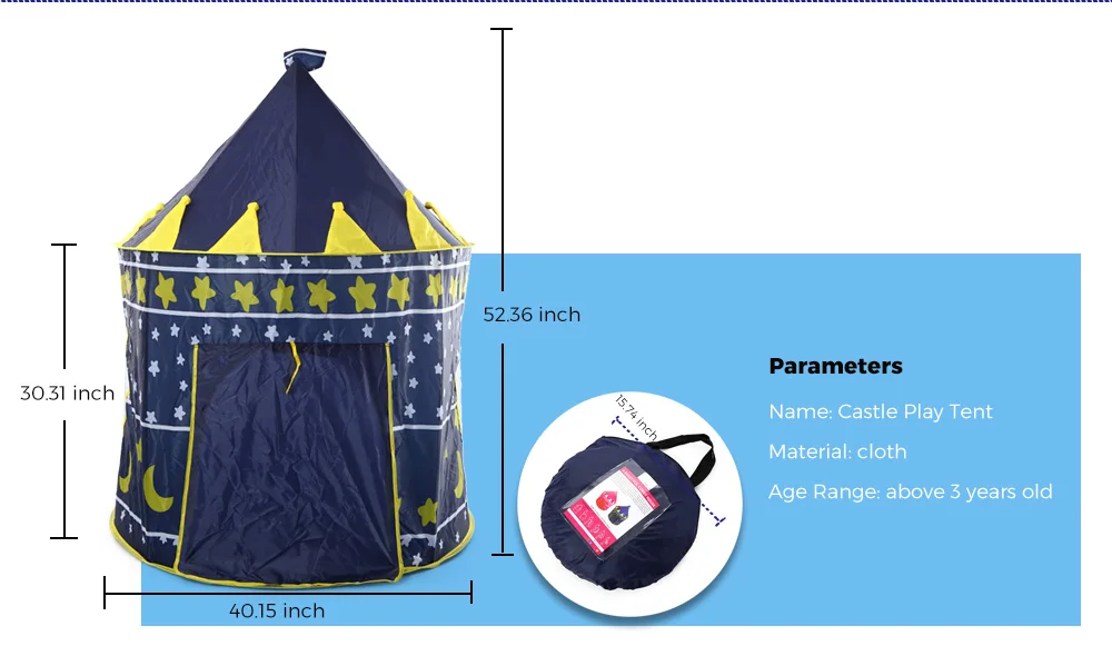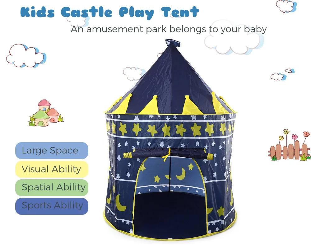Description: Are you ready to go camping with your little one? Then you shouldn't miss this awesome castle tent. This foldable child toy tent is practical, easy to carry. Your little one can easily assemble her own castle under adult's supervise. Our play tent will give your little one hours of fun!
