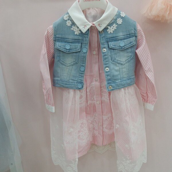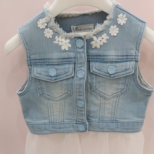 청쟈켓 조끼입니다~밑단에 레이스가 탈부착으로 두가지 연출가능합니다~