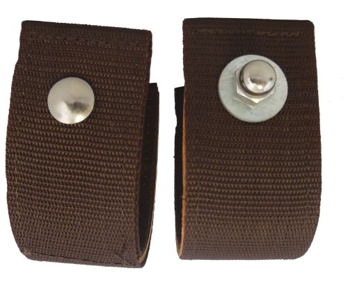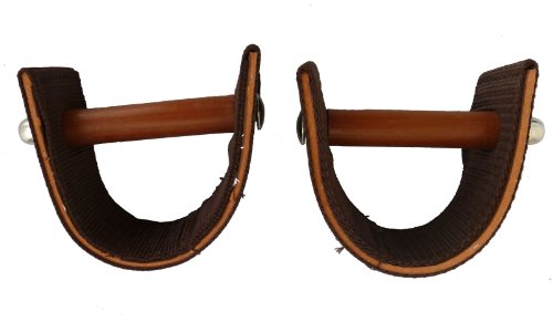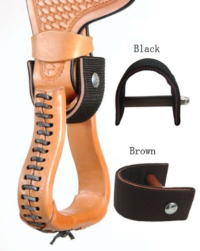 Studio : AJ Tack Publisher : AJ Tack Binding : Misc. Product Description Set of nylon lined stirrup turners. Made with heavy duty nylon webbing and leather, these turners keep stirrups at ready position, help to alleviate knee pain. 2 ½" neck, easy to install. Stirrups not included. 0