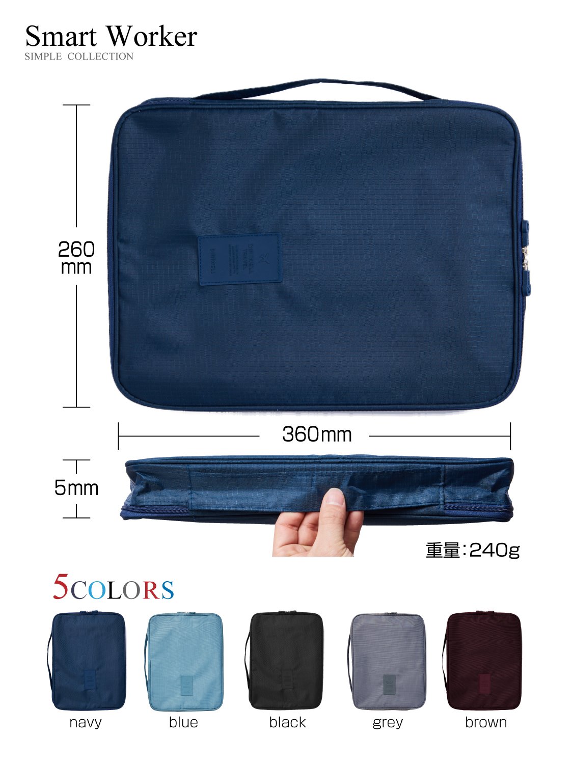 It is very compact with 360 mm in length × 260 mm in width × 50 mm in thickness, so it will not be an extra baggage even if you put it in a suitcase or business bag.