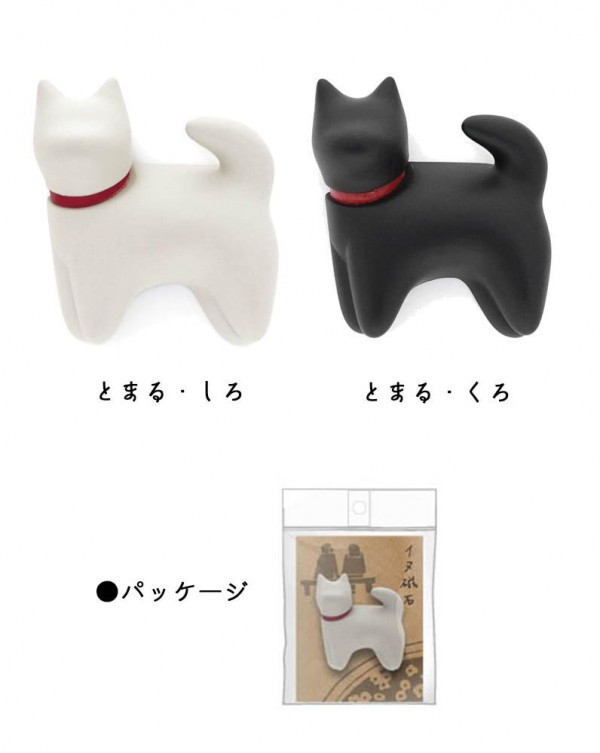 シンプルな形の中に犬の愛らしさを表現したマグネットです。とび出したしっぽはフック状になっているので、輪ゴムやマスキングテープなどの小物をかけることができます。 |