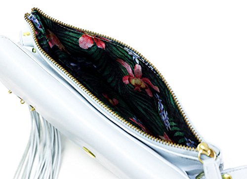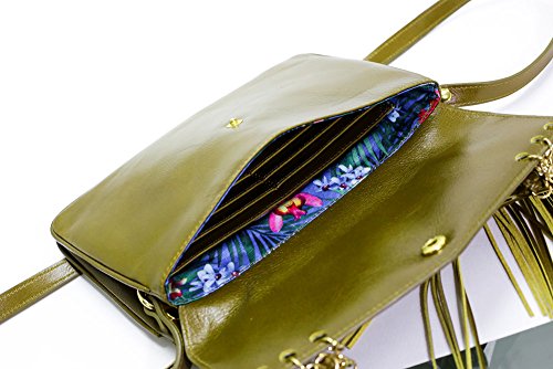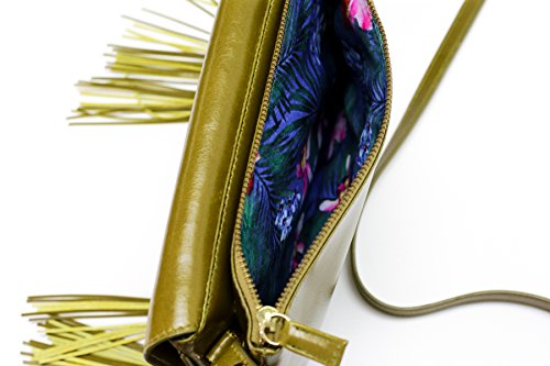 Product Description This Bohemian-Fringed/Tassels crossbody is designed for this generation that loves to go to parties and music festivals! The bag is entirely made of genuine leather and designed to fit everything! You can put in 6 cards (There's a designated slot for it), money, tissues, tickets, small makeups on both the front pocket or the zipper pocket in the back. Dimension: 9.4*6.5 inches. Weigh: 0.4kg. Handle Drop: 18.5 inches. Inner lining is a Polyester lining in beautiful floral print matching to its outer leather material. 0