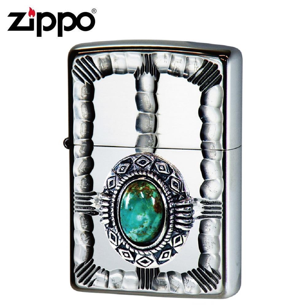 ターコイズをメタル貼りにしたデザインのZIPPO(ジッポー)。