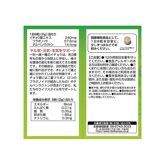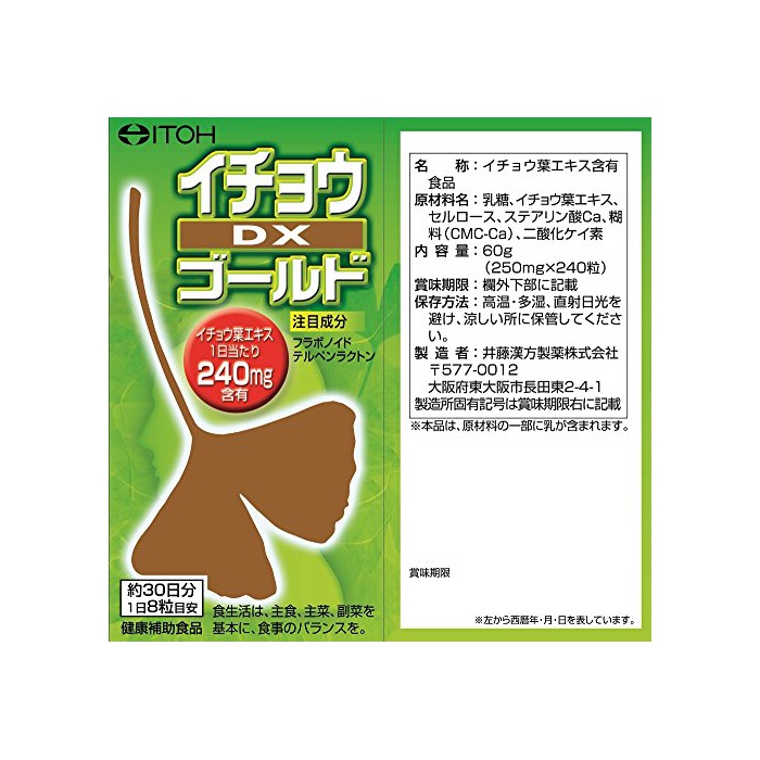 원본상품명: 井藤漢方製 イチョウDXゴルド 約30日分 250mgX240粒