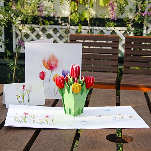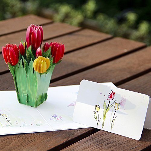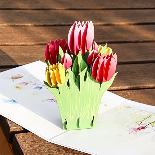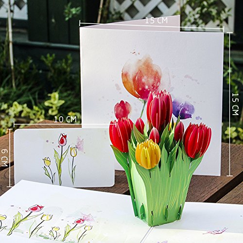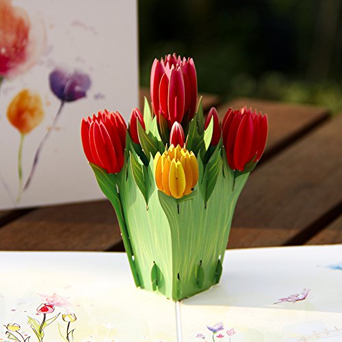-. Feature : POP UP TULIP FLOWER CARD:5.9*5.9 inches is a nice size, full of details and stunning color makes you appreciate how time affects art and beauty. / SOLID CARD STOCK: Pop up card flower is made of 300g top-quality hard art paper, come out of its commute as good as new / MINI UNIQUE NOTE CARD: Matches a perfect blank note card, meet your desire to write more blessing words / AMAZING AND STUNNING: Full of bloom in the pop up card are stunning. They remind us of love and sweet things, perfect 3d gift card for your lovers and frineds / SUIT ALL HOLIDAY SEASON: Our 3D Tulip card is blank so you are not limited to a specific occasion: Perfect as pop up thank you card, holiday christmas card, new year card, birthday card for her him kids