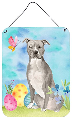 Caroline's Treasures Staffordshire Bull Terrier Easter Metal Print, 16" x 12", Multicolor