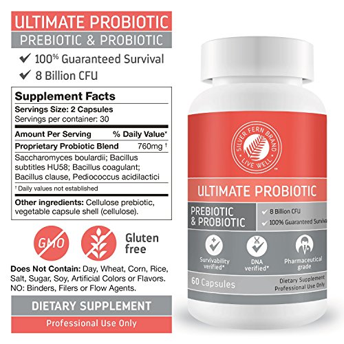 Silver Fern Ultimate Probiotic Supplement Vegicaps - Daily Metabolic Restoration, 100% Survivability, DNA Verified Multi-Strain Bacillus Probiotic Capsules (1 Bottle - 60 Capsules)