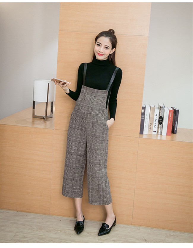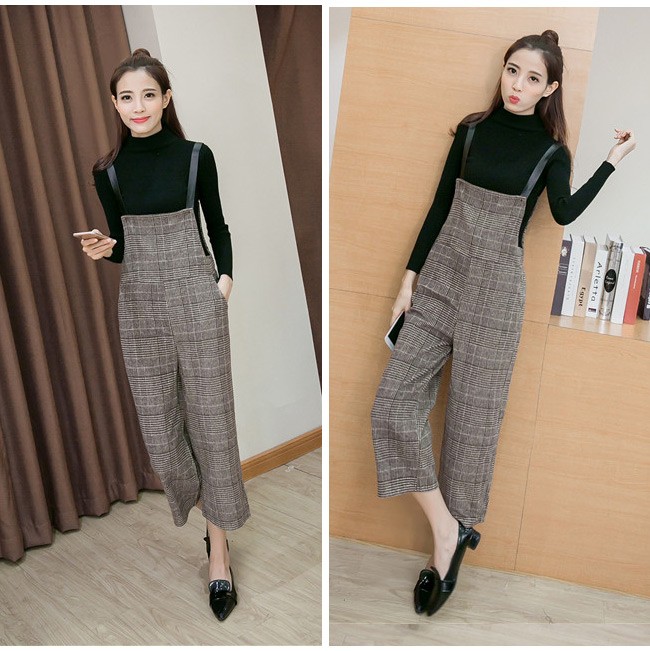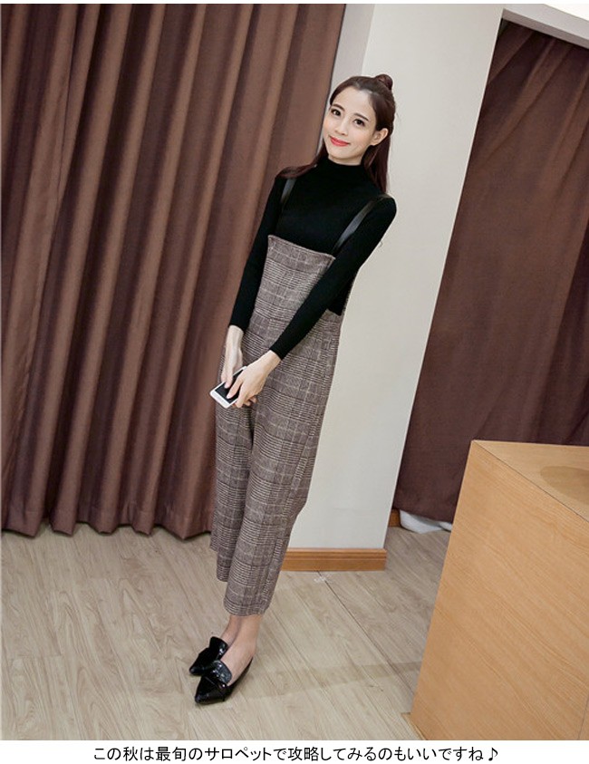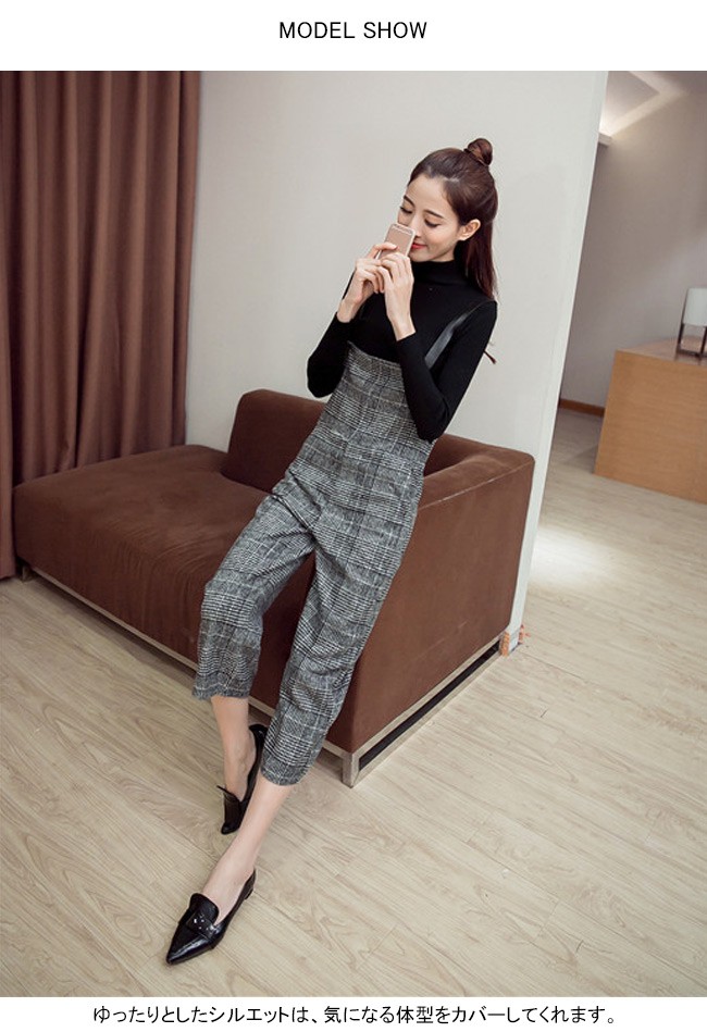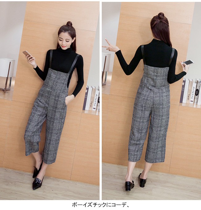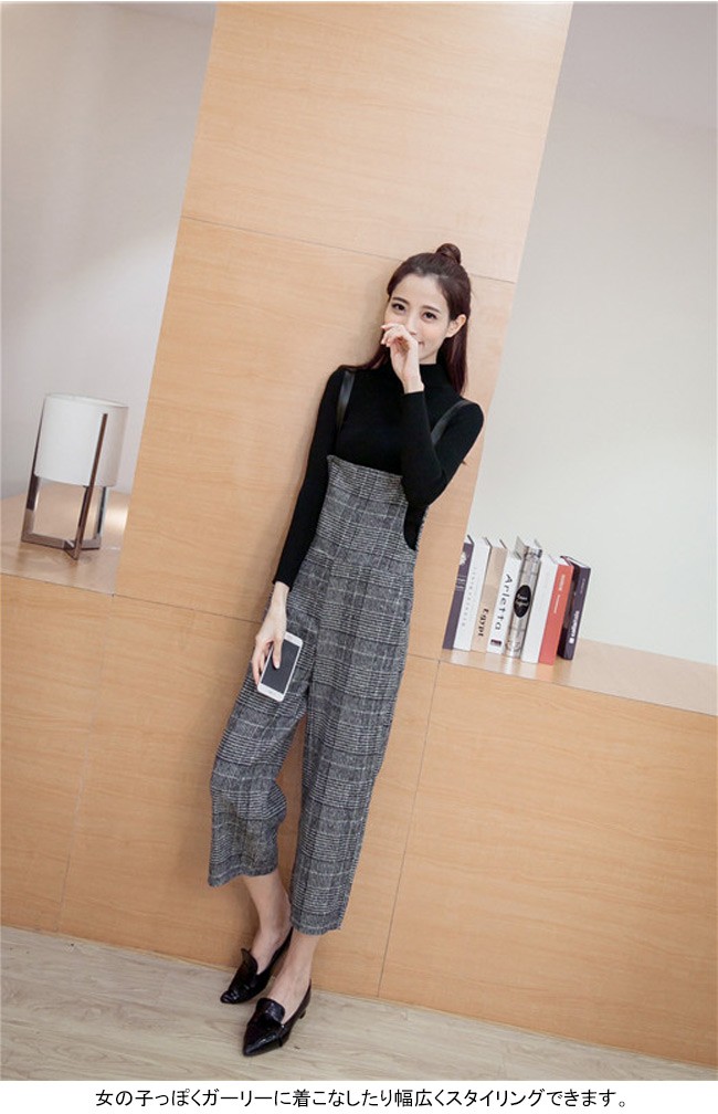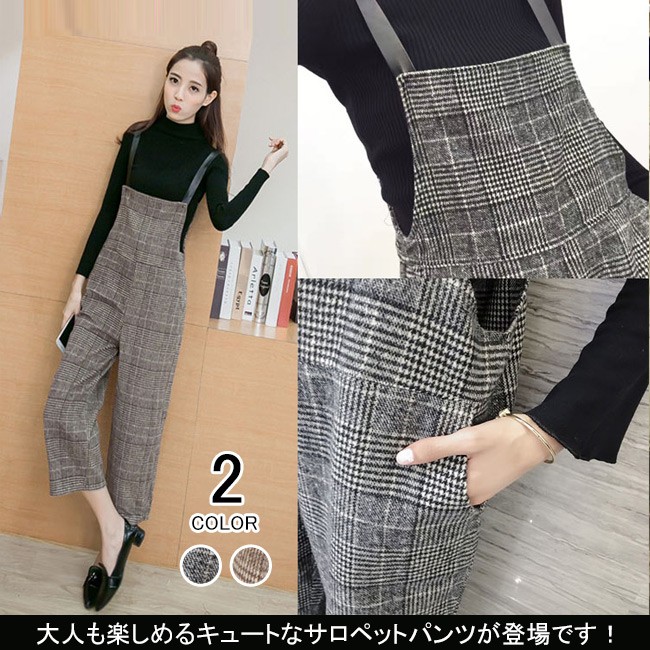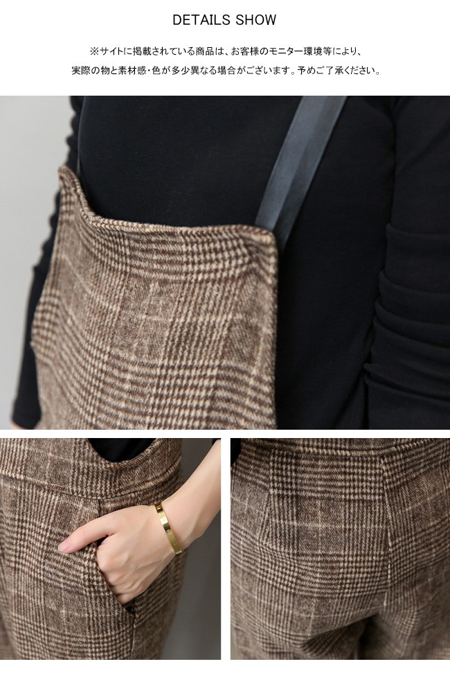 | 商品名 | グレンチェックパンツ サロペット ワイドパンツ オールインワン ラシャパンツ レディース 九分丈 グレンチェック オシャレ 2017秋新作 |