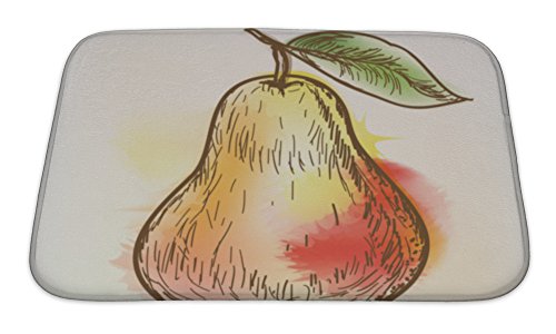 Gear New No Slip Microfiber Memory Foam Pear Watercolor Painting Bath Rug Mat, 24" X 17"