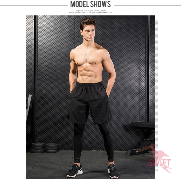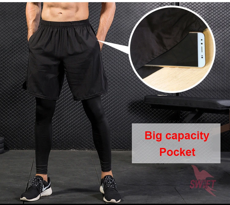 Name:Men's Fake 2 in 1 Running Shorts + Pants Quick Dry