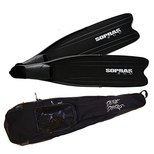 Studio : Sopras Sub Publisher : Sopras Sub Product Description Fins designed purposely for spearfishing and free-diving with special tri-material construction technology: - comfortable and soft thermo rubber foot pocket - high density TPR perimeter reinforcement providing the connection and strength needed between the blade and the foot pocket - extra long and flexible blade giving a spring-like feel and ultra fast acceleration with excellent reaction time. The rib-like structures on the side and blade surface are hydro-dynamic and channel water directly backwards keeping energy loss at minimum level. 0