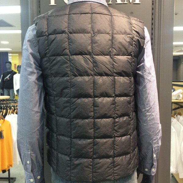 기본 라운드넥 라이트 다운 베스트입니다 고밀도로 짠 겉감과 방수 가공한 제품입니다