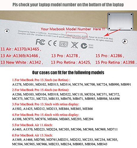 Fits Apple MacBook Air 11.6" (Models: A1370 and A1465) . Please kindly check the model number "A1xxx" on the back of Macbook before purchasing.
