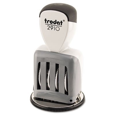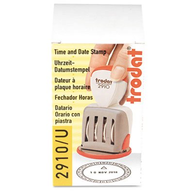 -. Feature : Trodat? time and date received stamp features a 10-year date band, 12-hour time dial and thumb wheel adjustments. / 12-hour time dial and 10-year date band for precise dating. / Clean, easy to use thumb wheel adjustment. / Sturdy steel frame with plastic cover. / Impression size: 2" diameter.