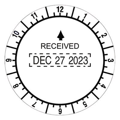 -. Title : Trodat Round Stamp, Time and Date Received, Conventional, Two-Inch Diameter