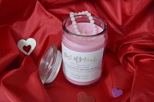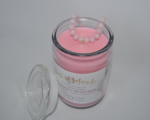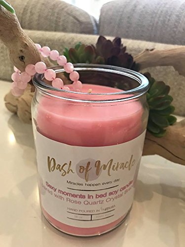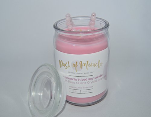 50% Stronger, Sexy Moments in Bed Best Price Hand Poured Positive Energy Scented Soy Candle With Rose Quartz Crystal Bracelet, Dash of Miracle Gift Set, Wellness Balance Spa,105 hours Burn, 18oz Jar
