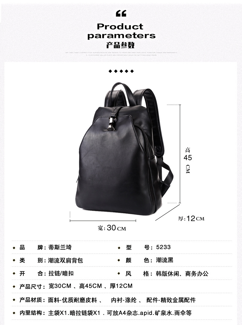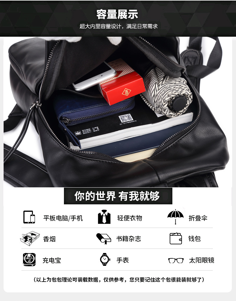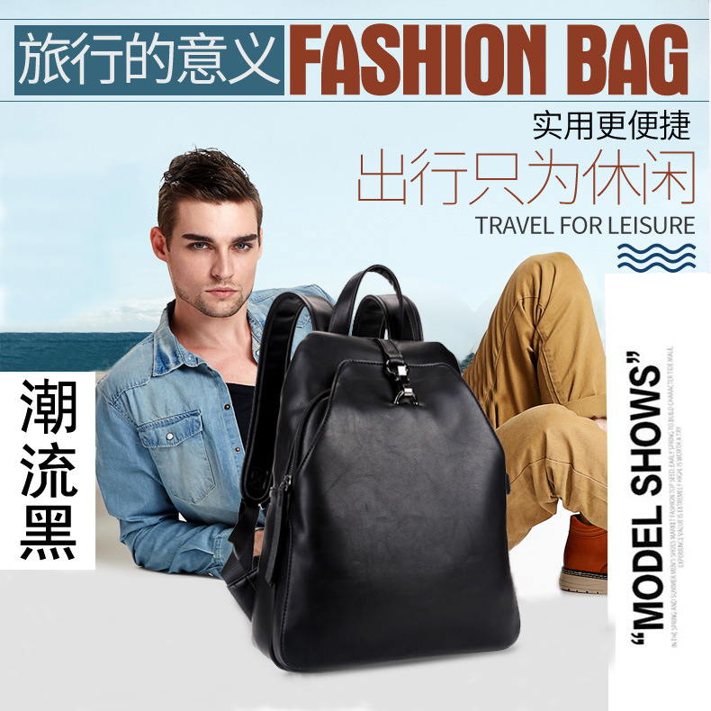 厂家直销男式pu皮时尚双肩包休闲旅行学生百搭个性书包一件代发