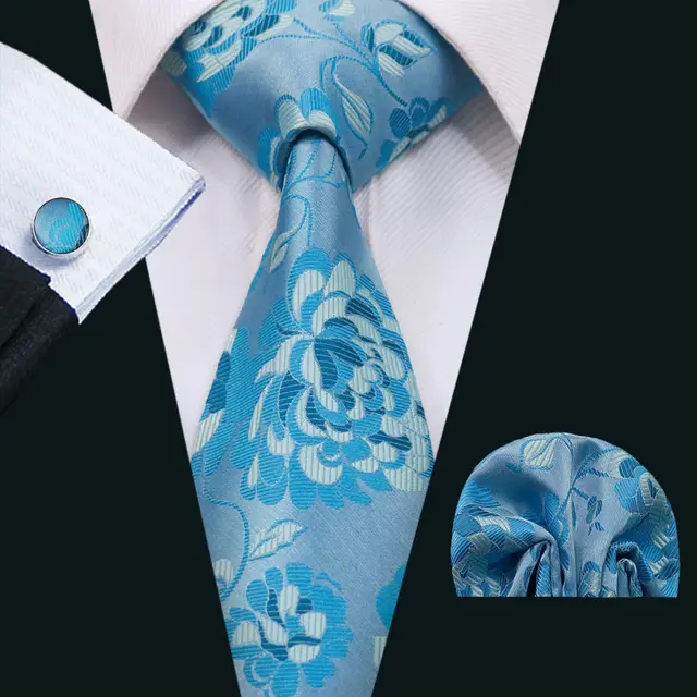 | [해외]LS-1393 배리. 좋아서 클래식 남성 넥타이 블루 꽃 비즈니스 100% 실크 넥타이 손수건 커프스 세트 남성 정장 웨딩 파티 신랑 |