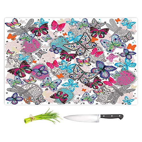 DiaNoche Designs CB-JulieAnsbroButterWhitePink1 Artist Julie Ansbro-Butterflies White Pink Cutting Boards from, Small 11" x 8"