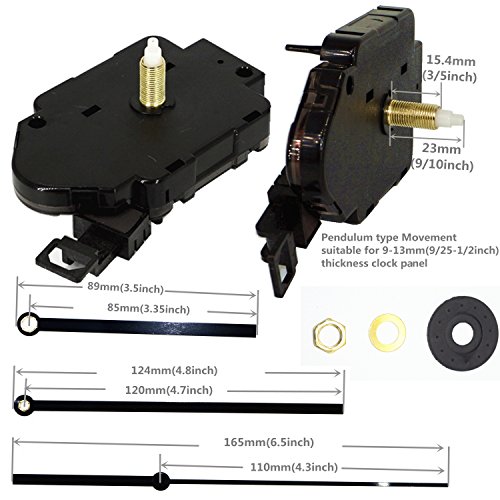 - .Pendulum type STEP movement, suitable for 9 - 13 mm (9/25 - 1/2 inches) thickness clock panel;Total shaft length: 23 mm (9/ 10 inches), thread length: 15.4 mm (3/5inches).