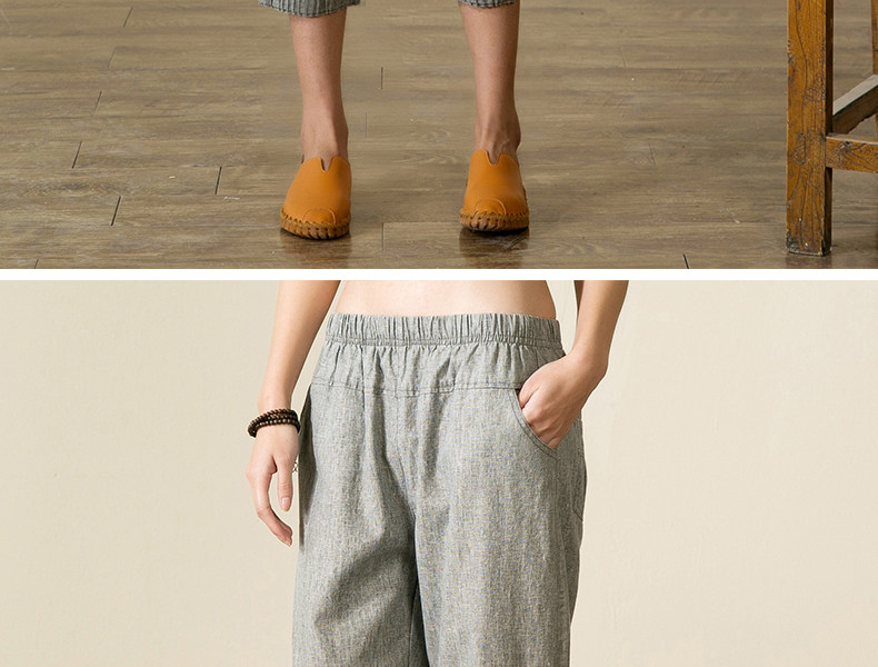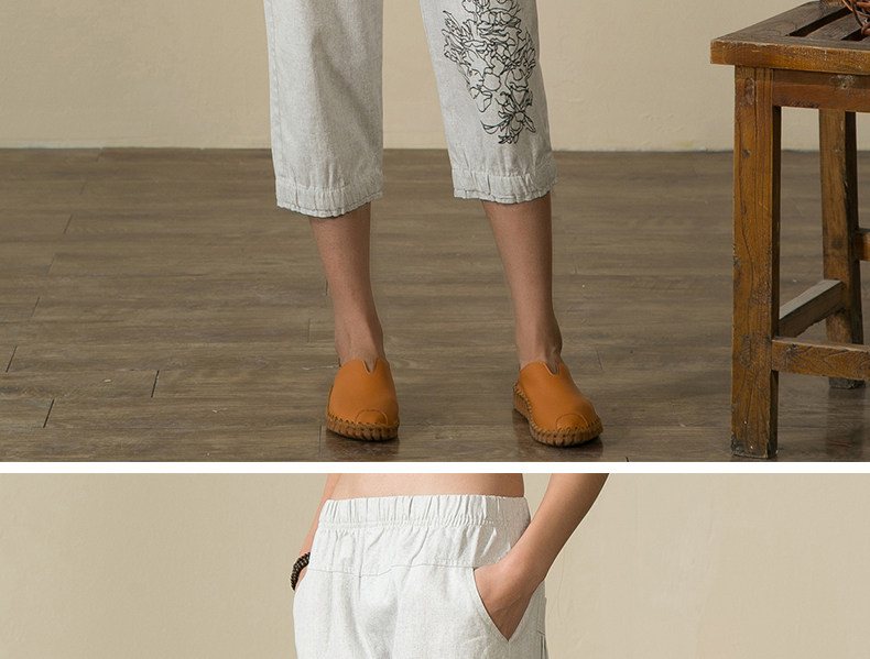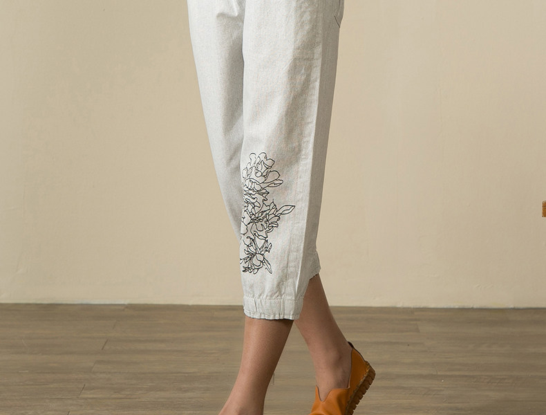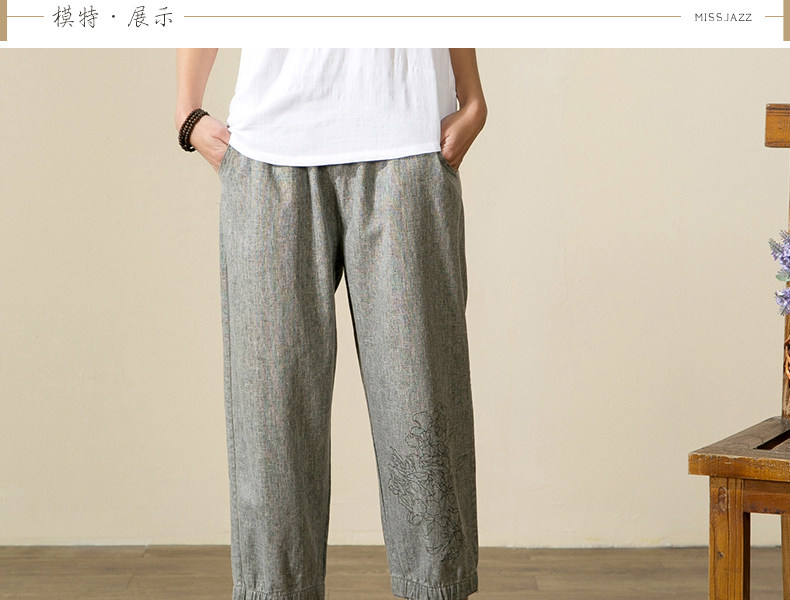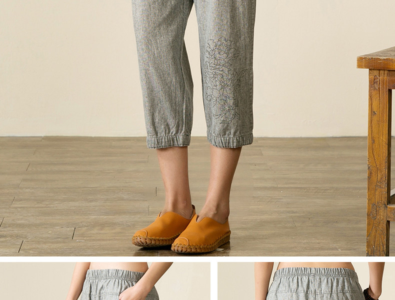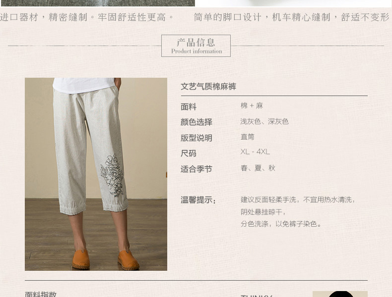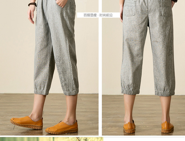 宝怡妮中老年亚麻七分裤女妈妈装裤子女装亚麻裤中年人松紧腰女裤