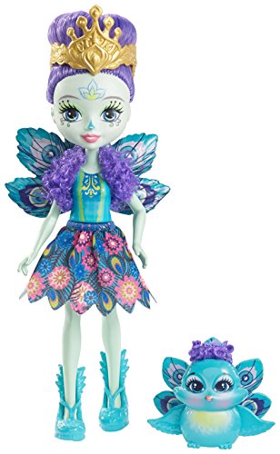-. Feature : This adorable six-inch doll and her animal friend are inspired by the world of Enchantimals, a fantastical place nestled in nature / The fashionable Patter Peacock doll comes with Flap peacock figure -- so cute with a furry patch of hair and a colorful open tail of feathers! / Patter Peacock doll wears a brightly colored outfit with a removable skirt that has a floral and peacock feather P.R.Int / Her blue shoes are feather-inspired, a golden tiara sits atop her rooted purple updo, facial features are animal-inspired -- she even has peacock feather wings and furry purple accents! / Play out all kinds of enchanting stories with these enchanted friends, and collect them all to build out a world of Enchantimals (each sold separately, subject to availability)